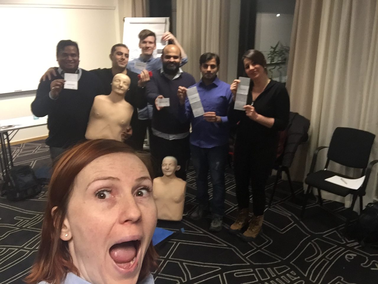 That is why we think this is the most valuable gift we can give to our students, First Aid Training for free for our members. We work with collaboration with Swedish Red Cross. Just take a look at our awesome photos from the training which we had 31th of January in Scandic Hotel in Täby, Stockholm.